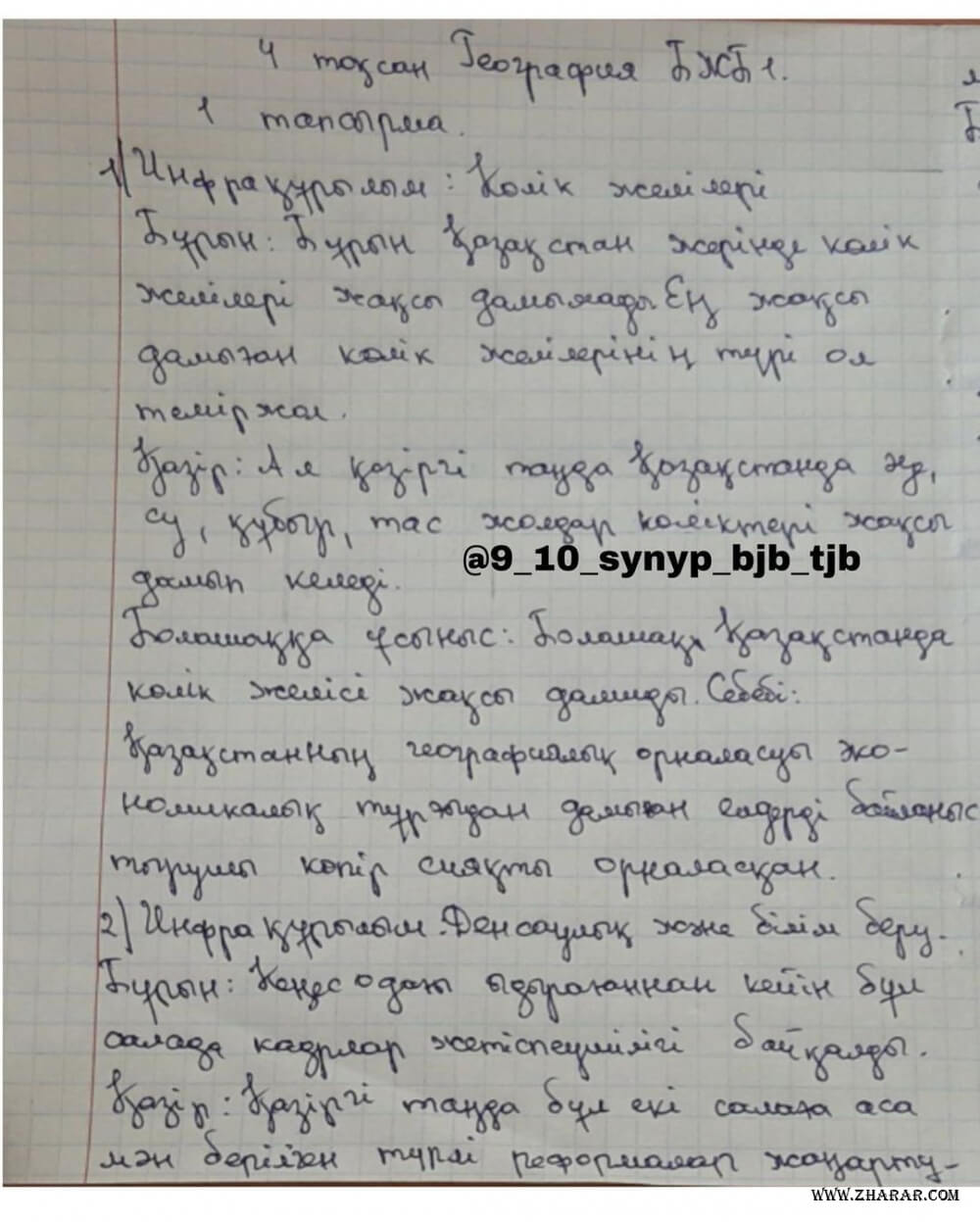География 9 сынып БЖБ 4 тоқсан жауаптары