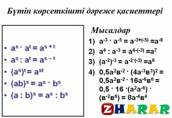 Бүтін көрсеткішті дәреженің қасиеттерін қайталаймыз