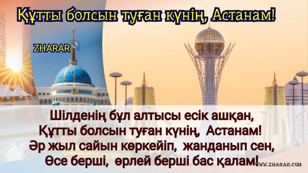 Құрметті Қазақстандықтар! Сіздерге арнап астана күніне байланысты 6 шілде елорда туралы суреттер жарияланды. Арасында құттықтау тілектермен жазылған суреттер де бар. Астана мерекесі құтты болсын!
