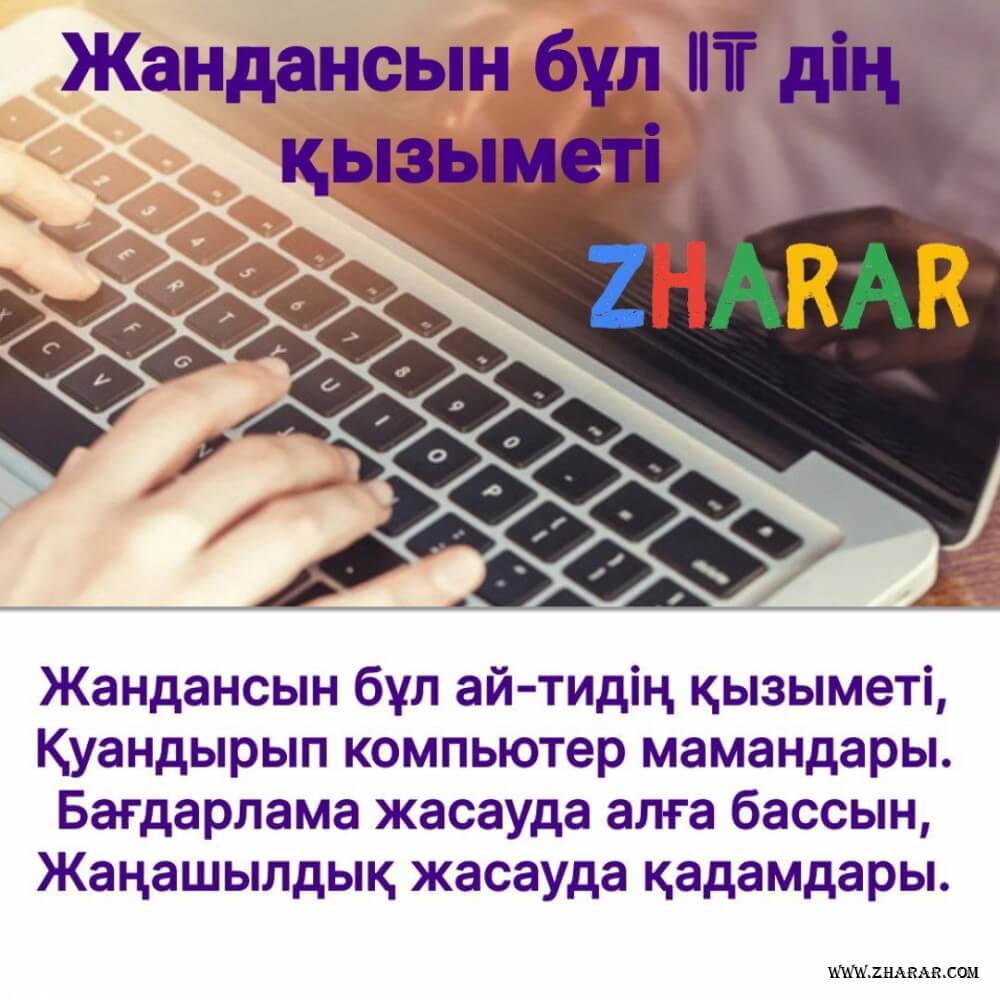 Құрметті оқырмандар! Сіздерге арнап Байланыс және ақпарат құралдары қызметкерлері күніне байланысты Бағдарламашы, IT маманы туралы суреттер жарияланды. Арасында құттықтау тілектермен жазылған суреттер де бар. Байланыс және ақпарат құралдары қызметкерлері күні мерекесі құтты болсын!